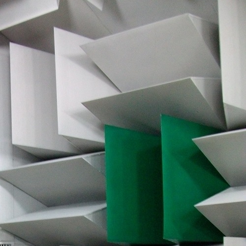 - ◆ 环保性能好。金属孔板下面衬有无纺布,使尖劈内部填充的吸声玻璃棉纤维不会泄露飘散出来。同时采用环保型吸声玻璃棉,没有有害气体和气味析出。